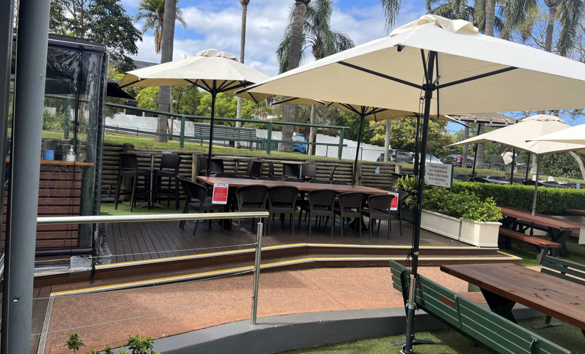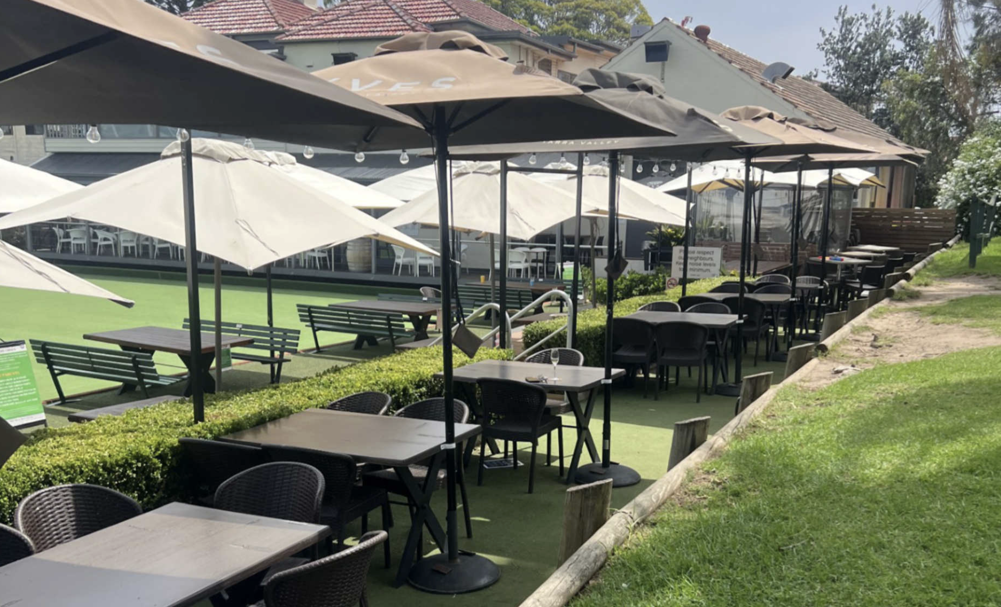 This area offers a relaxed and inviting space, perfect for small bookings. With tables positioned right next to the park, it’s an ideal spot for enjoying a meal or drinks while keeping an eye on the kids as they play.
